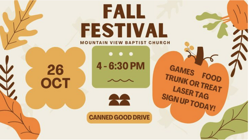 Fall Festival 2025! There will be free food, games, laser tag, hayrides, inflatables, trunk or treating for the kids and car decorating contests! Sign up to volunteer today!